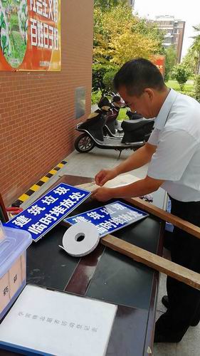 迎檢中,物業(yè)部主動(dòng)出擊,制作公益宣傳牌,建立“學(xué)雷鋒志愿者服務(wù)站”,對環(huán)境衛(wèi)生進(jìn)行全面清理,頂著烈日,揮汗如雨,各自分工協(xié)作。