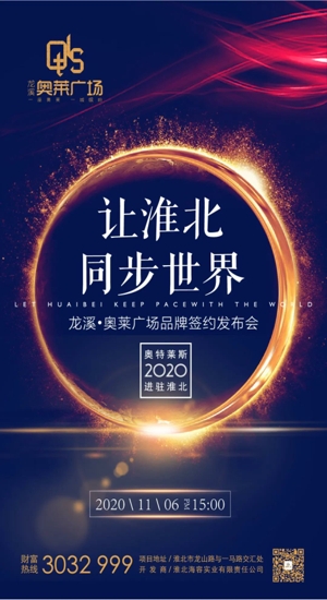 11月6日,龍溪奧萊廣場招商發(fā)布會(huì)簽約儀式即將盛大啟幕,屆時(shí),百余家知名品牌商家齊聚淮北,見證龍溪奧萊廣場未來發(fā)展。
