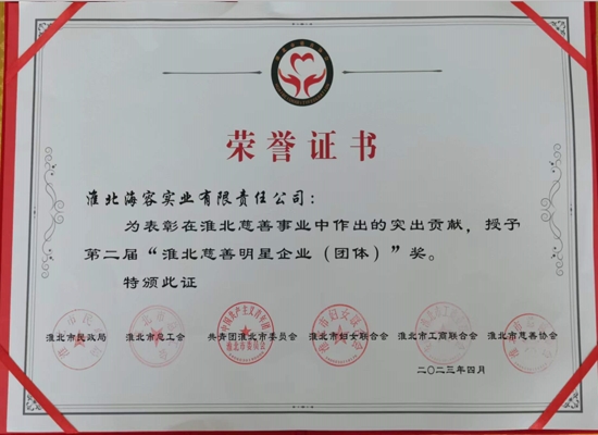 獲第二屆“淮北慈善明星企業(yè)(團(tuán)體)”獎(jiǎng)