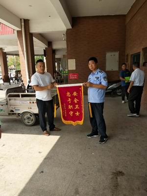 6月8日中午1:00,龍溪水岸保安黃思剛巡查地下車庫發(fā)現(xiàn)一輛汽車的油箱泄露,立即通知班長黃文成,班長黃文成帶領(lǐng)成員黃思剛、吳松、黃思建、黃傳寶立刻采取措施封鎖車道,禁止其他車輛進入車庫,一邊安排通知該車主,一邊用沙子填埋稀釋泄露汽油,為避免明火引起爆炸,防患于未然,處理完畢后又對車庫進行沖刷,排除異味。事后該車主為表達謝意,為龍溪水岸保安贈送“安全衛(wèi)士、忠于職守”錦旗一面。