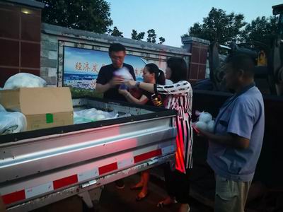 災(zāi)難無情人有情。8月21日,在淮北高岳街道辦事處倡議組織下,海容公司作為救災(zāi)團(tuán)隊(duì)之一安排公司總經(jīng)理石啟遠(yuǎn)和辦公室主任張倩倩為受災(zāi)人員送去救災(zāi)物資。