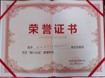 獲淮北市脫貧攻堅(jiān)“愛心企業(yè)”榮譽(yù)稱號(hào)