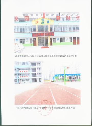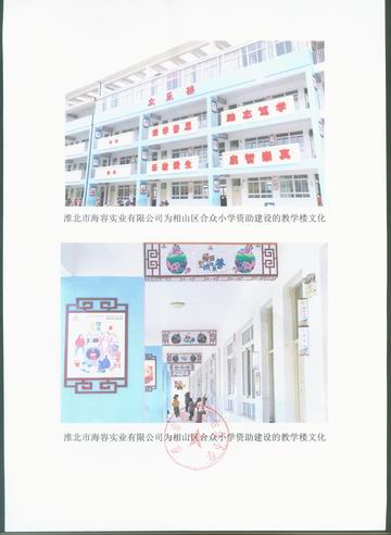 近日,由淮北海容實業(yè)公司捐資助教的相山區(qū)合眾小學設(shè)施建設(shè),在眾人的期盼中終于落成并投入使用。