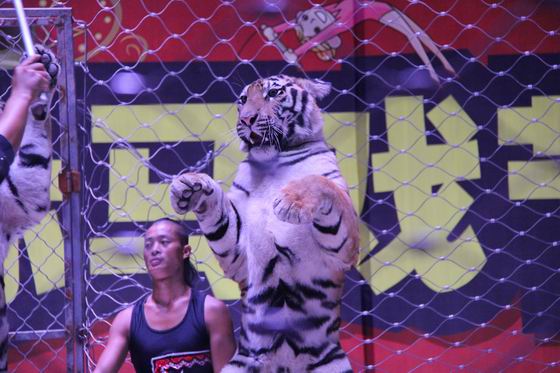 俄羅斯大馬戲節(jié)目精彩紛呈,威猛叢林之王與萬獸之王的同臺競技讓觀眾們屏氣凝神,命懸一線的高空飛人和震撼的騰空飛杠帶來驚險與刺激的快感,幽默與溫情的小丑表演讓觀眾們了解大馬戲的另一面精彩;憨態(tài)可掬的狗熊,猴子騎單車,驚險浪橋飛人等節(jié)目演繹,為淮北市民帶來精彩絕倫的視覺享受,領(lǐng)略到不一樣的風情。整臺演出融合驚險、刺激、滑稽、神秘等多種體驗,讓淮北人民真正感受頂級馬戲的真正魅力,演出后,現(xiàn)場爆發(fā)出如暴風雨一樣的掌聲,人們紛紛被皇家大馬戲團的精彩演出所折服。